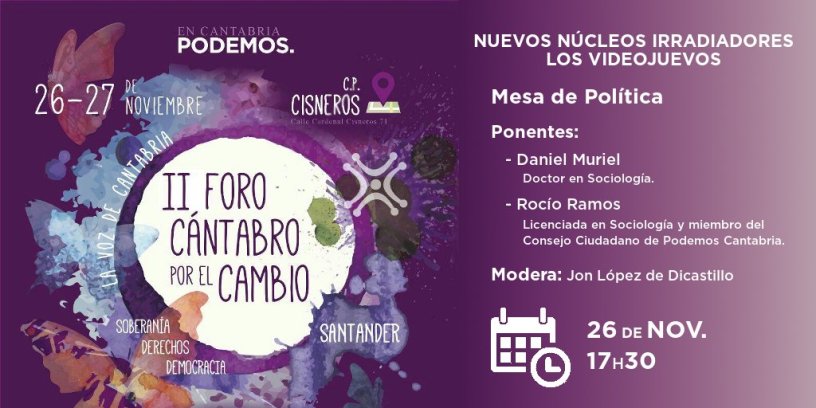 I participated in the political round table of the 2nd Forum on Social Change, which was held in Santander on 26 November and organised by Podemos Cantabria. In the round table, entitled ‘New Irradiating Nucleus: video games’, I spoke about how video games reflect and encourage the hegemonic political rationalities, those linked to Neoliberalism, but also how they allow us to envisage lines of breakage towards more promising social settings.Here, the video of my talk in Spanish, thanks to Podemos Cantabria.